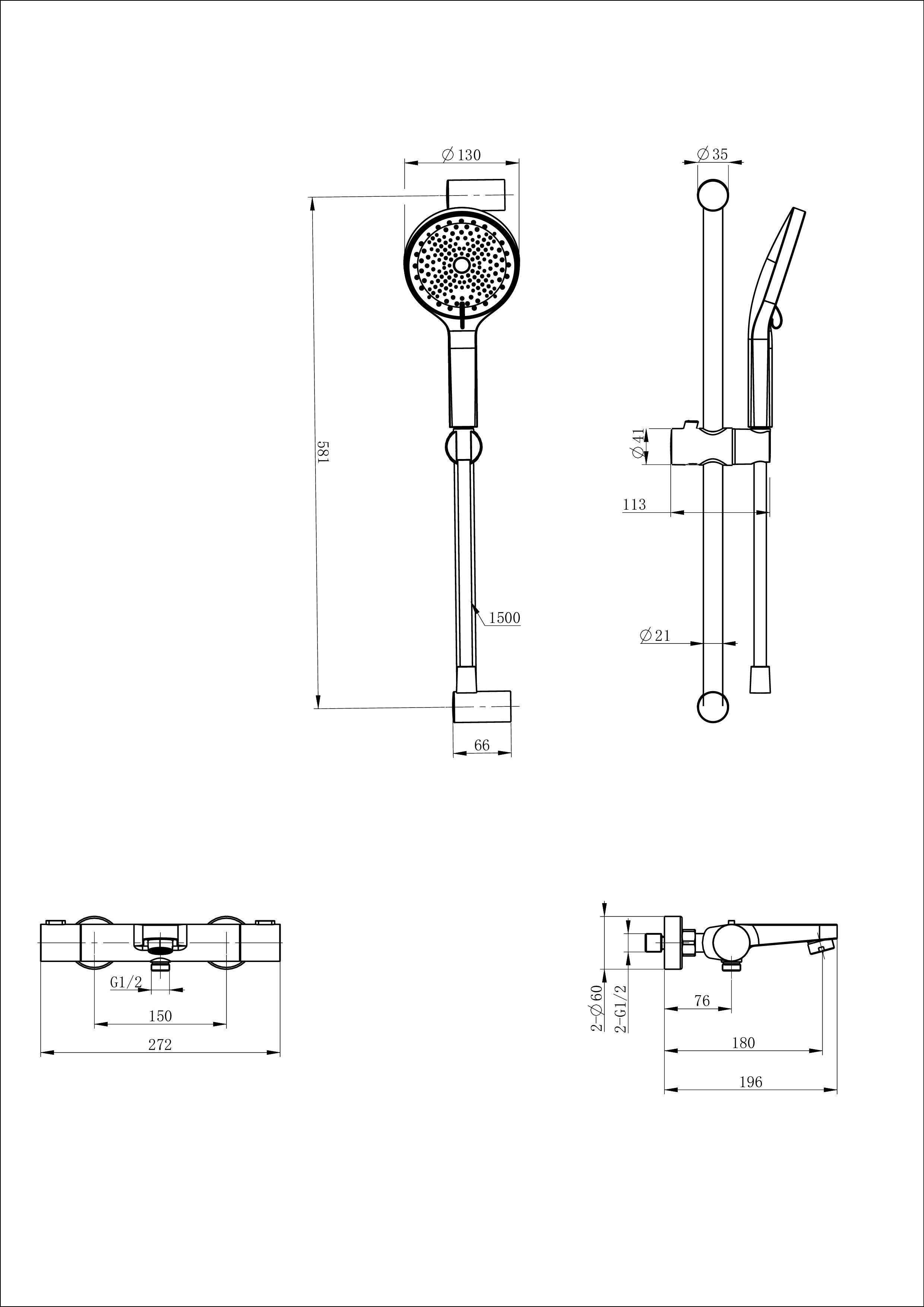 смеситель, душевой шланг/ держатель для душа, душевая штанга, душевая лейка, эксцентрики, монтажный комплект