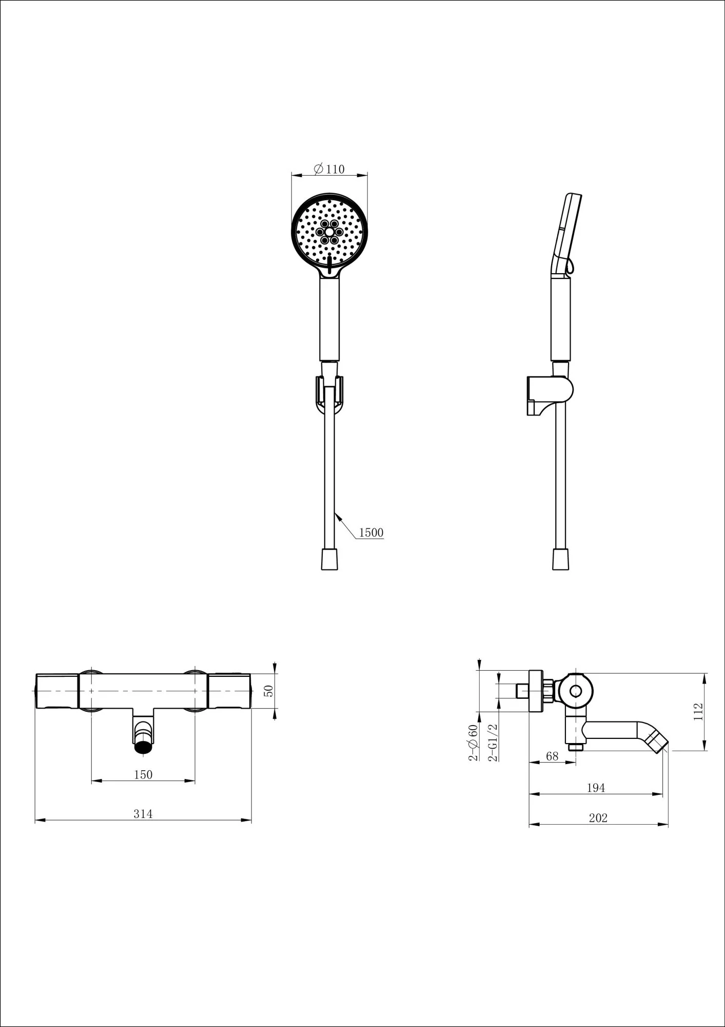 смеситель, душевой шланг, держатель для душа, душевая лейка, эксцентрики, монтажный комплект
