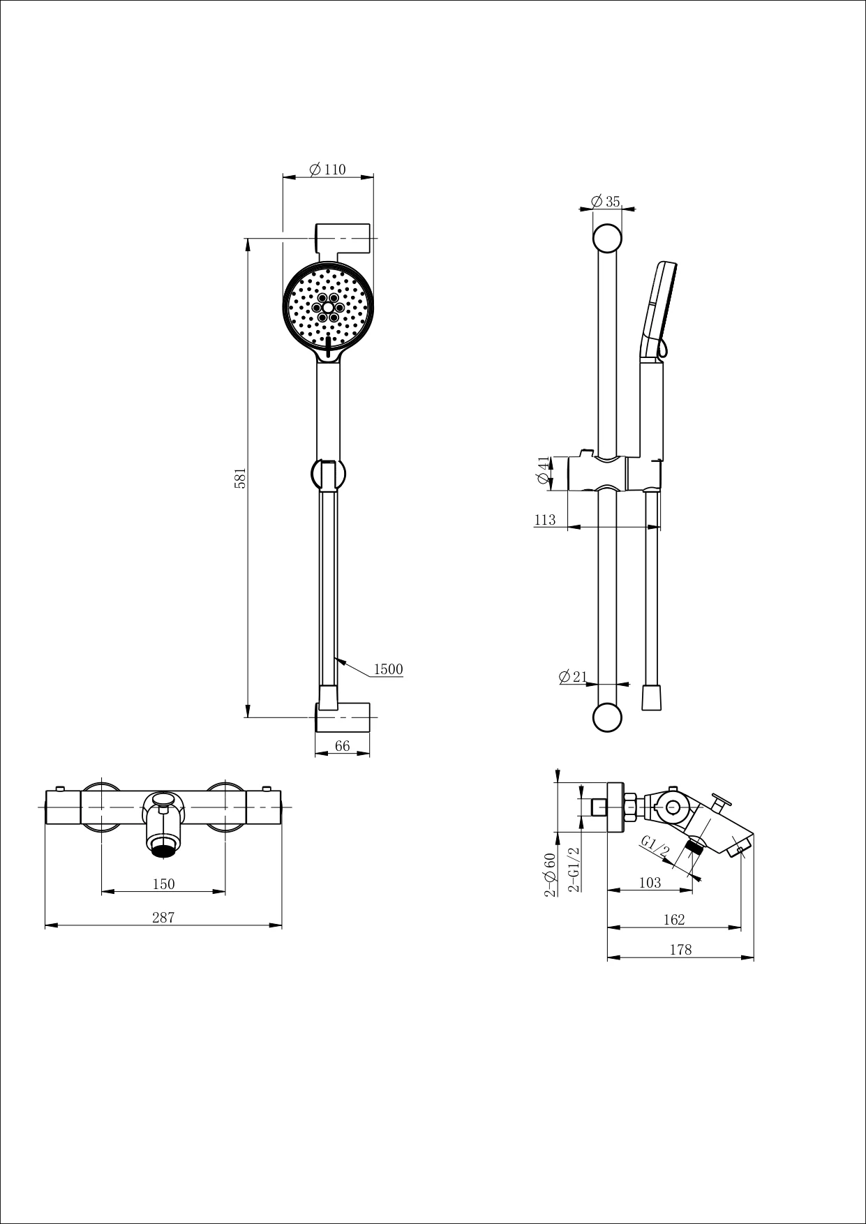 смеситель, душевой шланг/ держатель для душа, душевая штанга, душевая лейка, эксцентрики, монтажный комплект