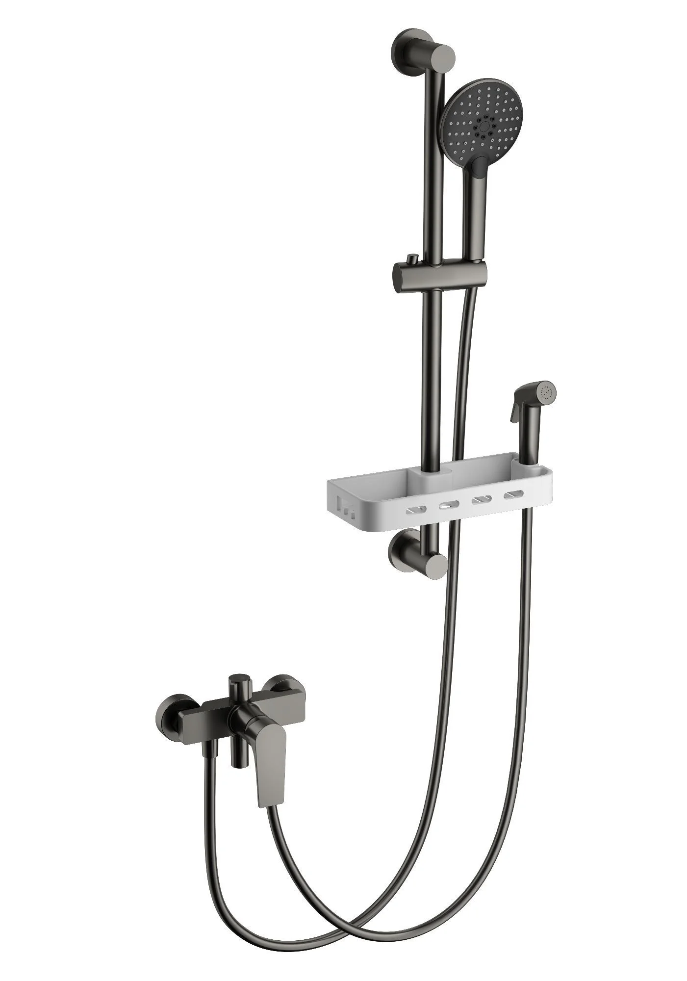 смеситель, душевой шланг/ держатель для душа, полка, душевая штанга, душевая лейка, эксцентрики, монтажный комплект