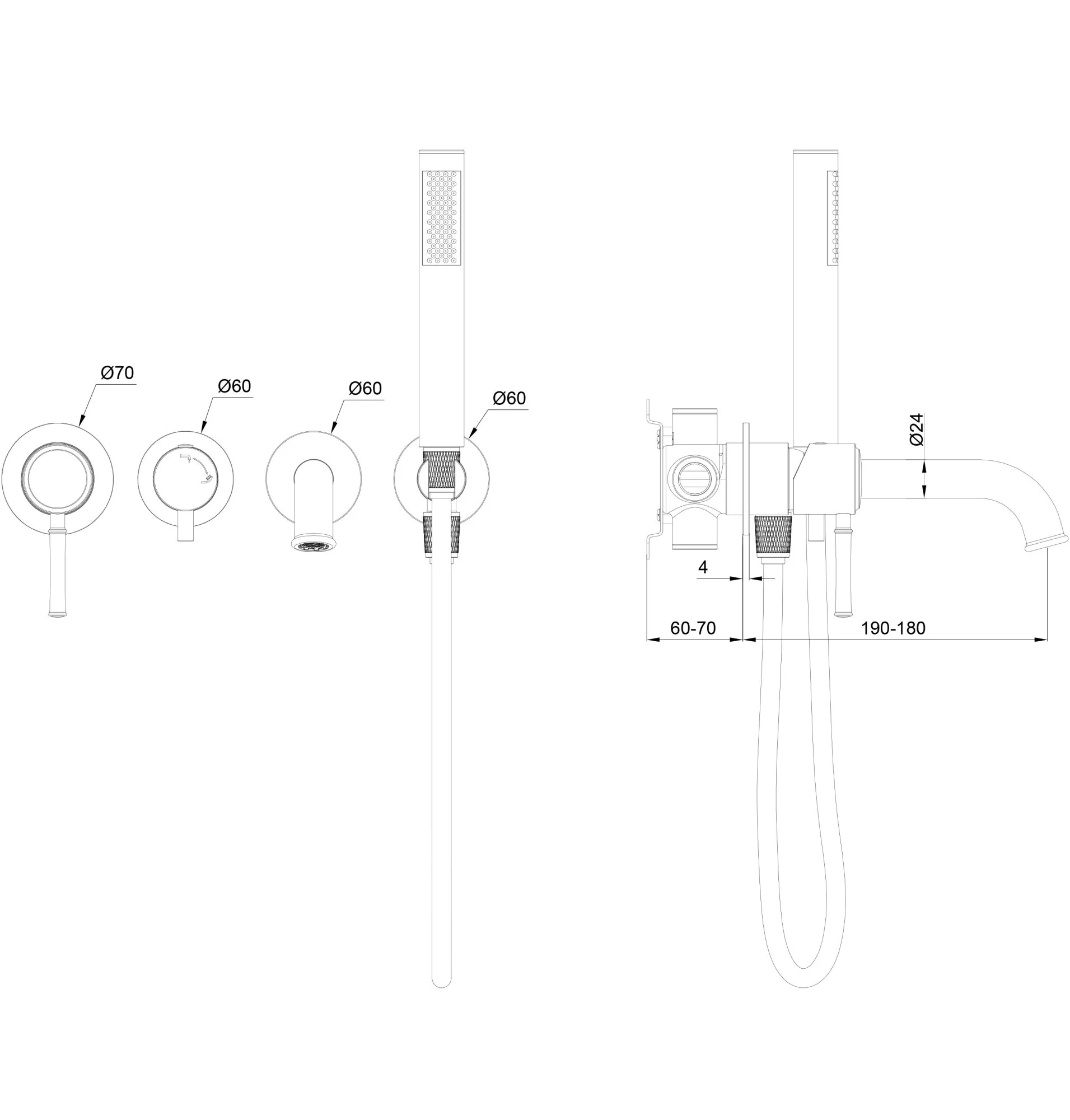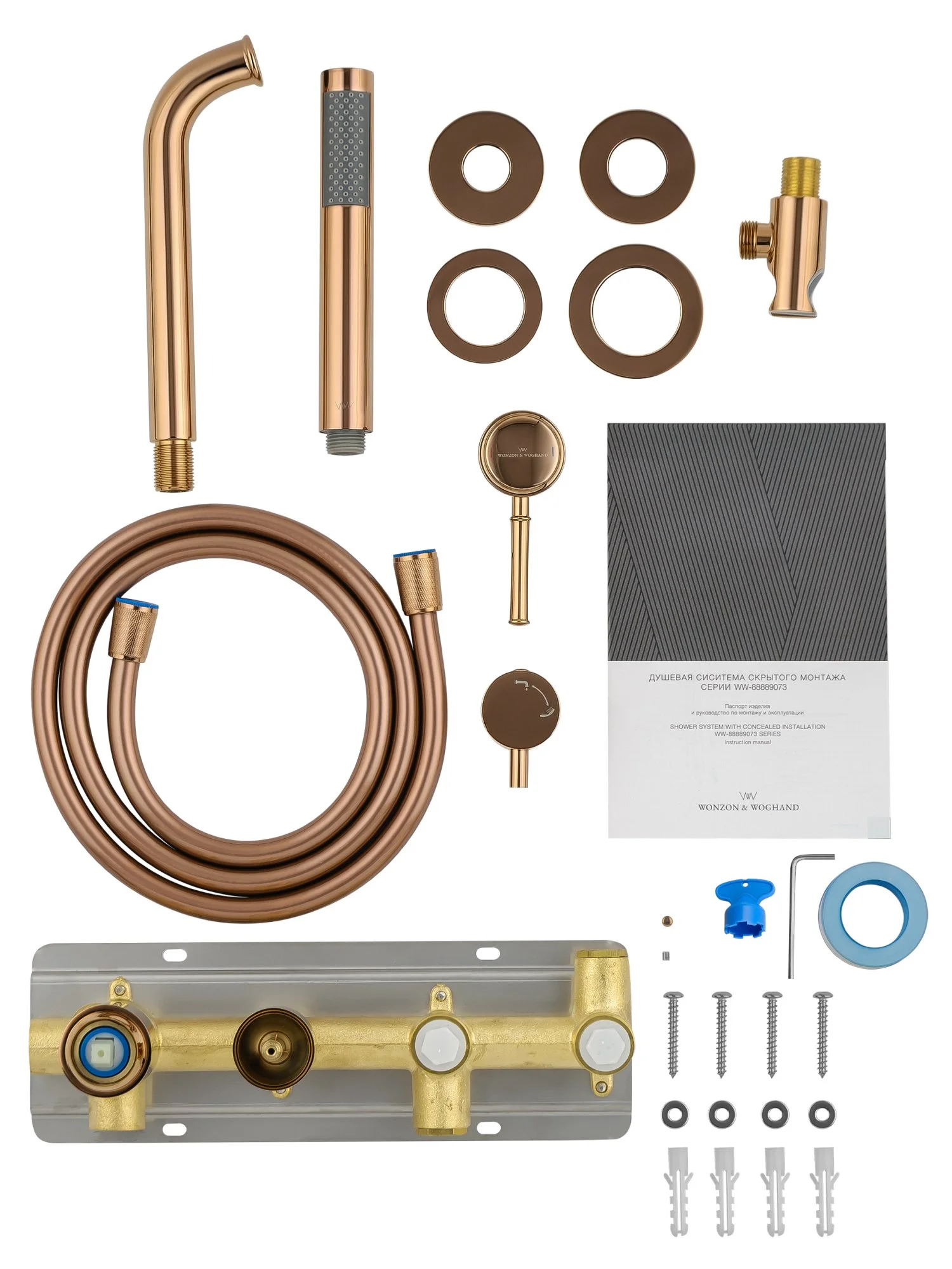 смеситель, душевой шланг, держатель для душа, душевая лейка, эксцентрики, монтажный комплект