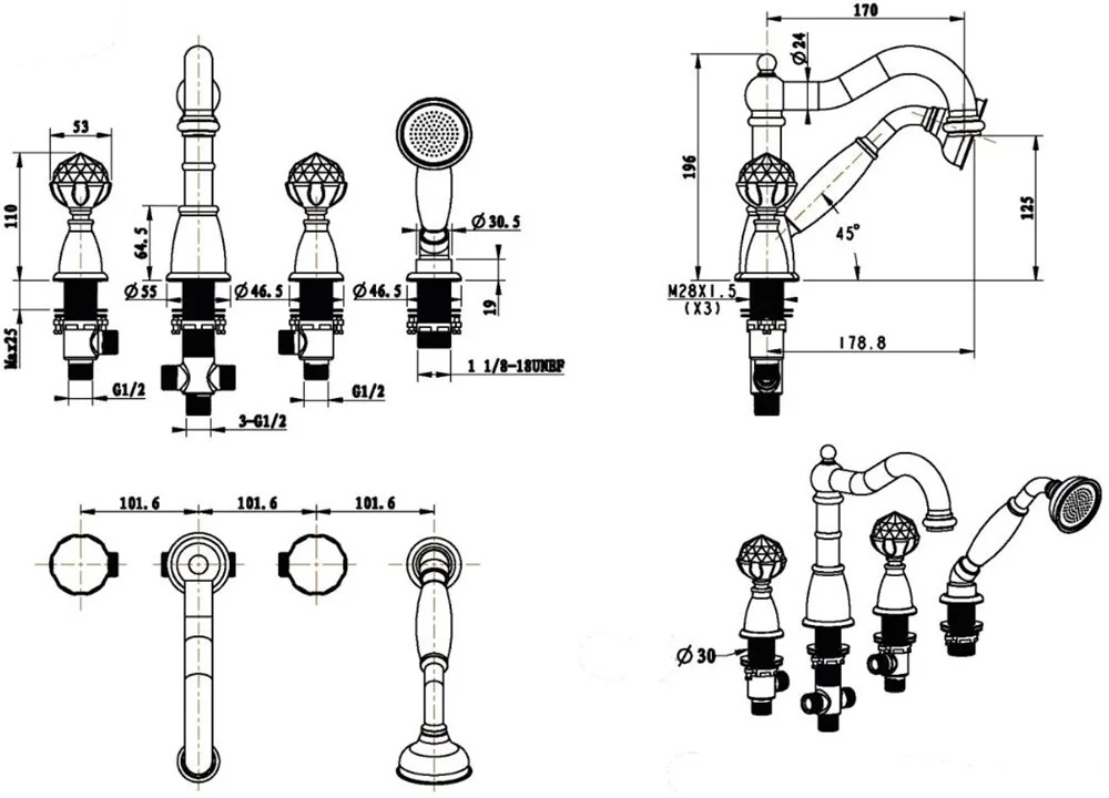 Купить Смесители на борт ванны производства Boheme (Италия), коллекция Brilante, код товара: 200054 можно выгодно в Сантемо.ру: