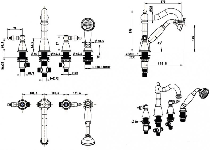 Купить Смесители на борт ванны производства Boheme (Италия), коллекция Medici, код товара: 200057 можно выгодно в Сантемо.ру: