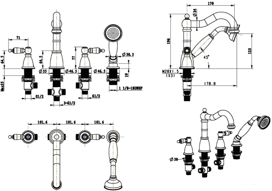 Купить Смесители на борт ванны производства Boheme (Италия), коллекция Tradizionale, код товара: 254844 можно выгодно в Сантемо.ру:
