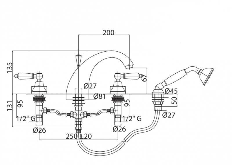 Смеситель на борт ванны Cezares Diamond (DIAMOND-BVD-03/24-Sw) золото 24 карат