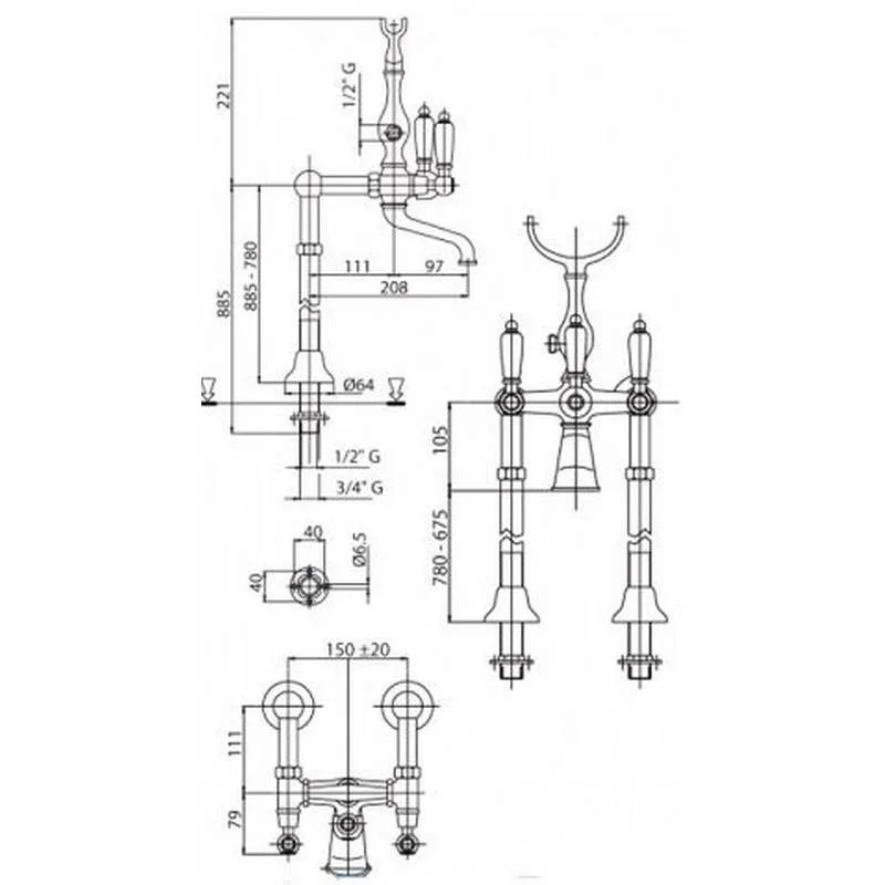 Смеситель на борт ванны Cezares Diamond (DIAMOND-PBV-01-Sw-N) хром