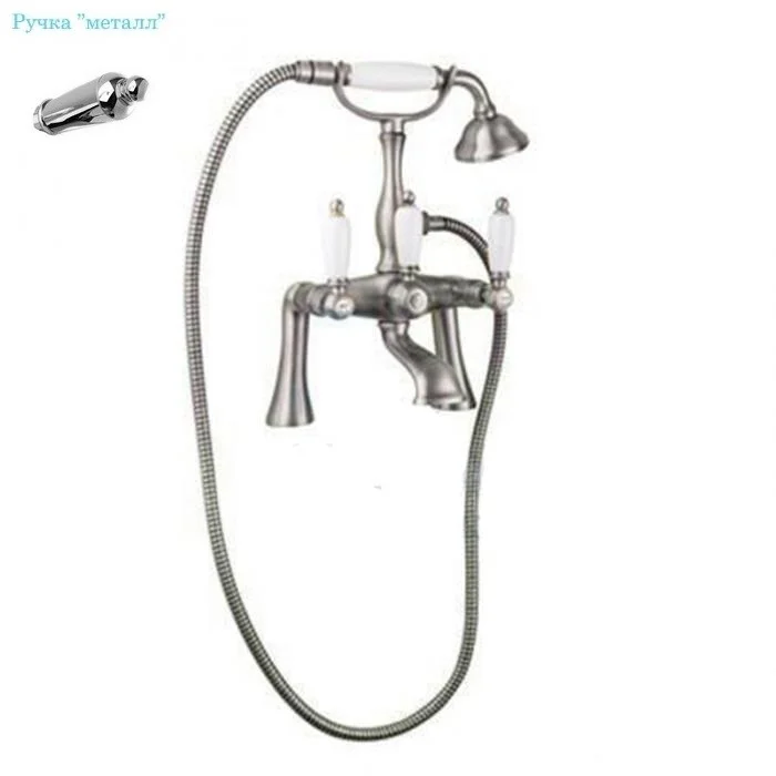 Смеситель на борт ванной с ручным душем.