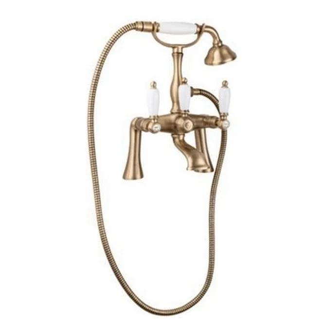 Смеситель на борт ванной с ручным душем.