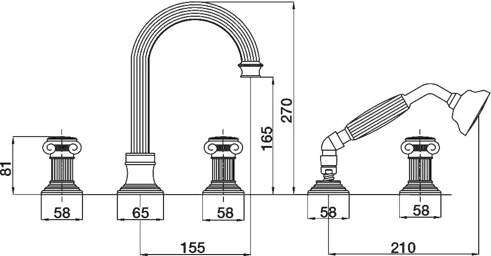 - Оснащение: аэратор, душевая лейка, душевой шланг, дивертор, ручки круглые