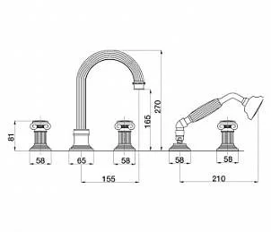 - Оснащение: аэратор, душевая лейка, душевой шланг, дивертор, ручки квадратные