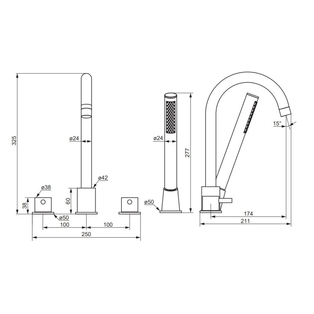 Смеситель на борт ванны Damixa Scandinavian Pure 360400300 черный матовый