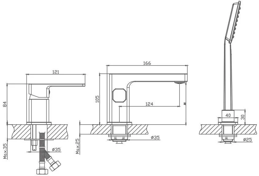 Смеситель на борт ванны Haiba. Керамический картридж 35 мм. Душевой гарнитур в комплекте.