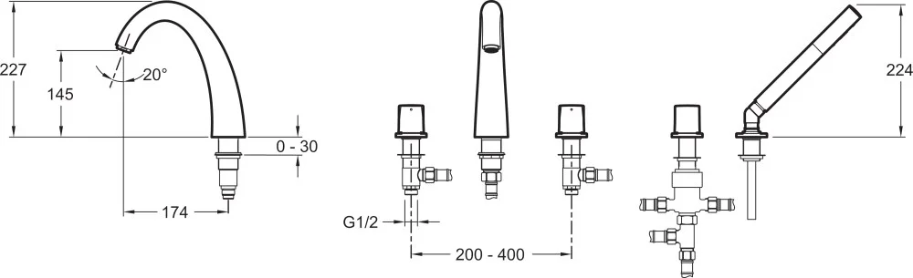Смеситель на борт ванны Jacob Delafon Elevation E18876-CP