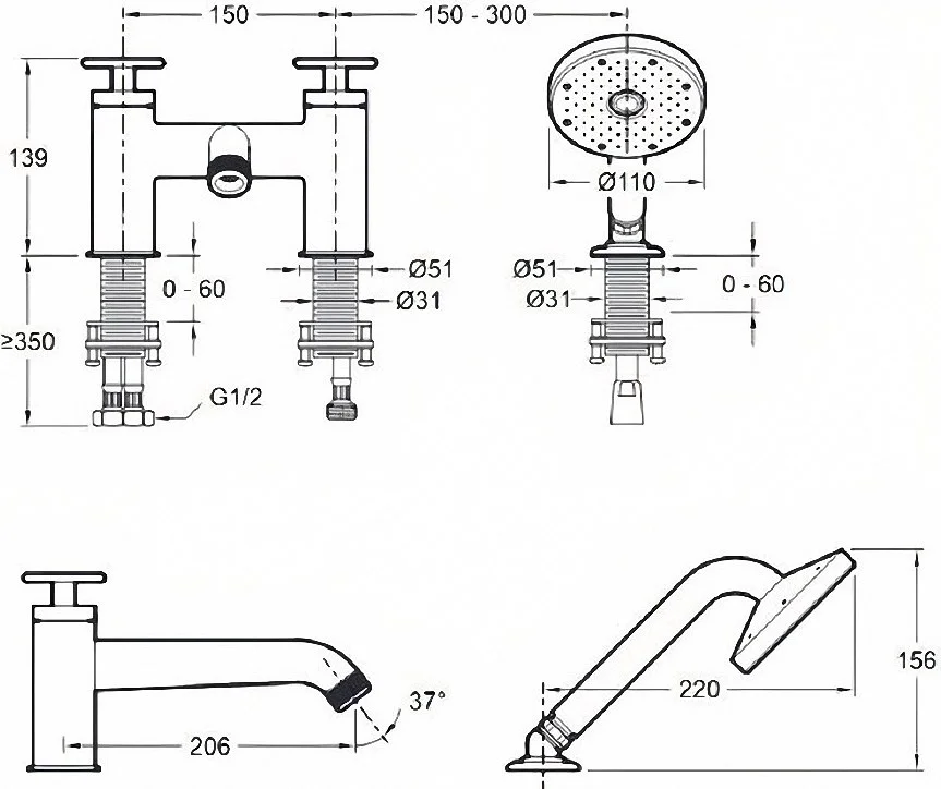 Смеситель для ванны/душана три отверстия Nouvelle Vague, Jacob Delafon