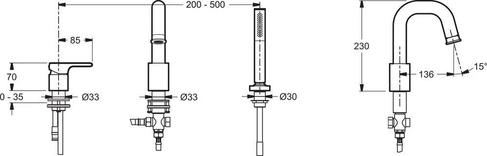 Singulier, смеситель для ванны и душа на 3 отверстия, арт. E10873-CP, Jacob Delafon, Франция