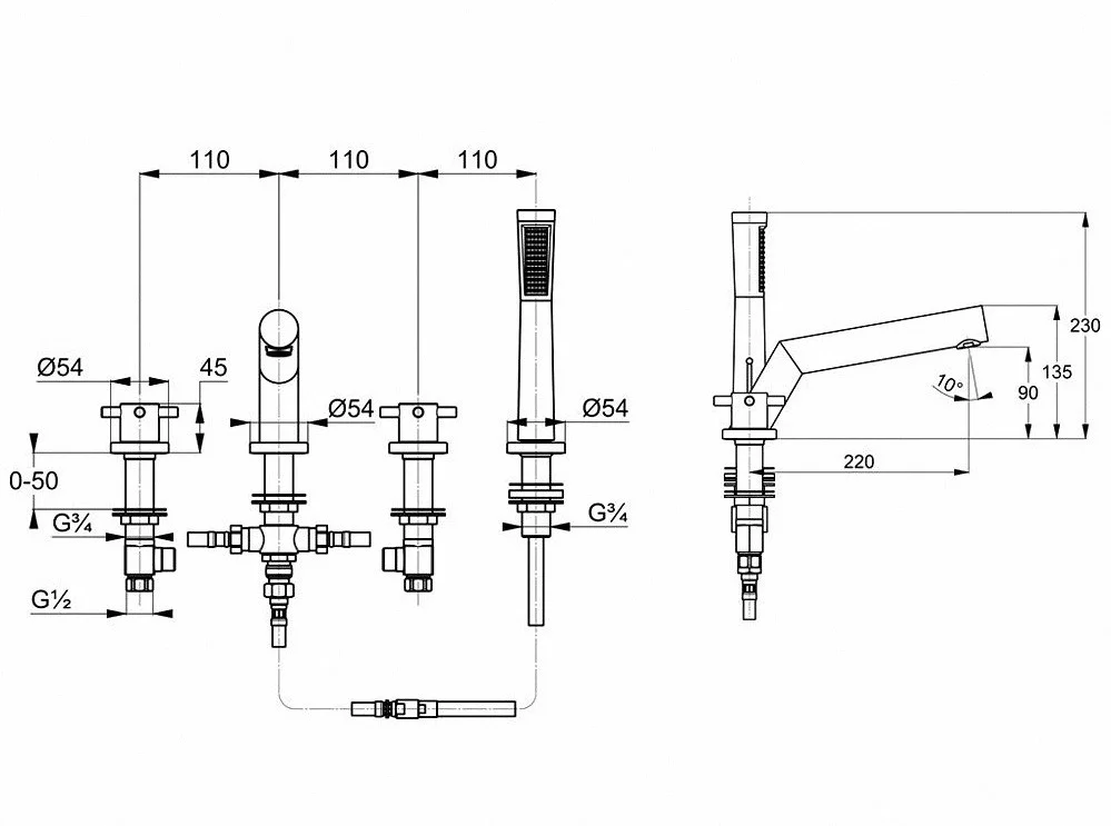 Смеситель на борт ванны Kludi Bozz 384240520 на 4 отверстия