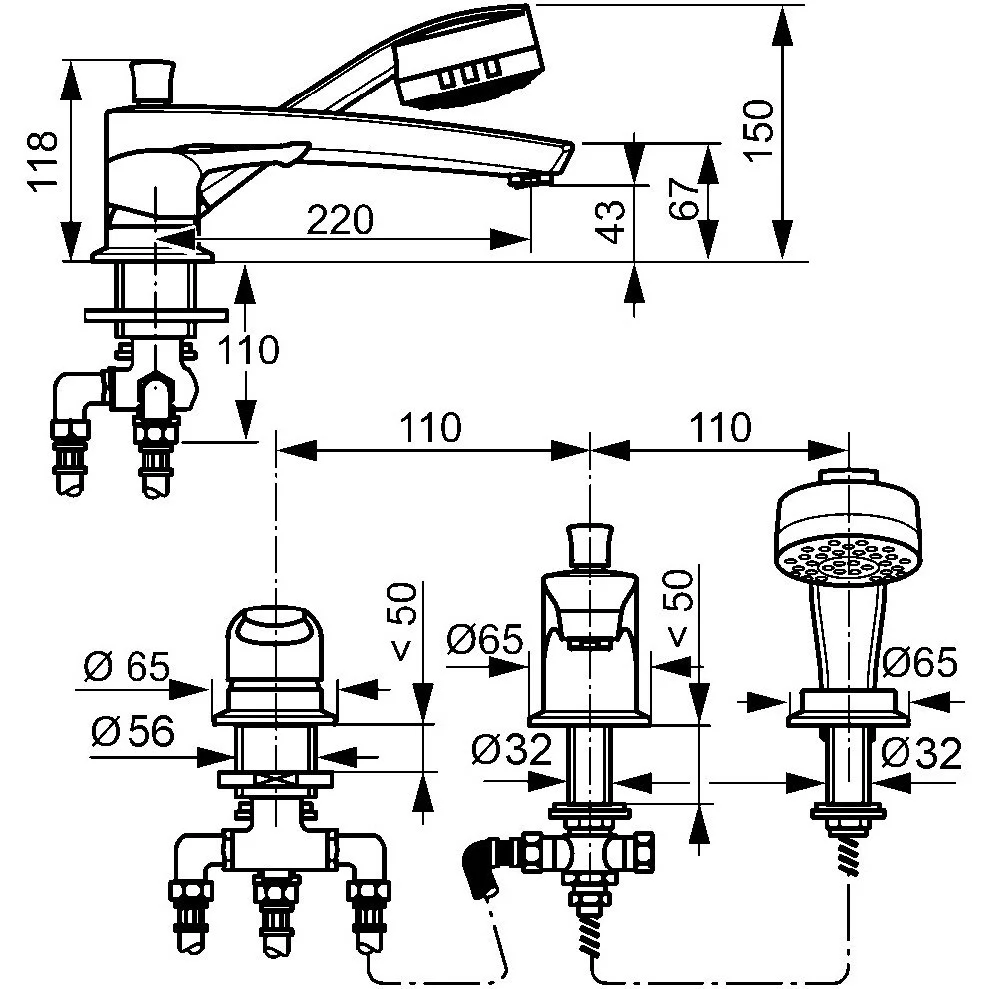 - переключатель: ванна/душ