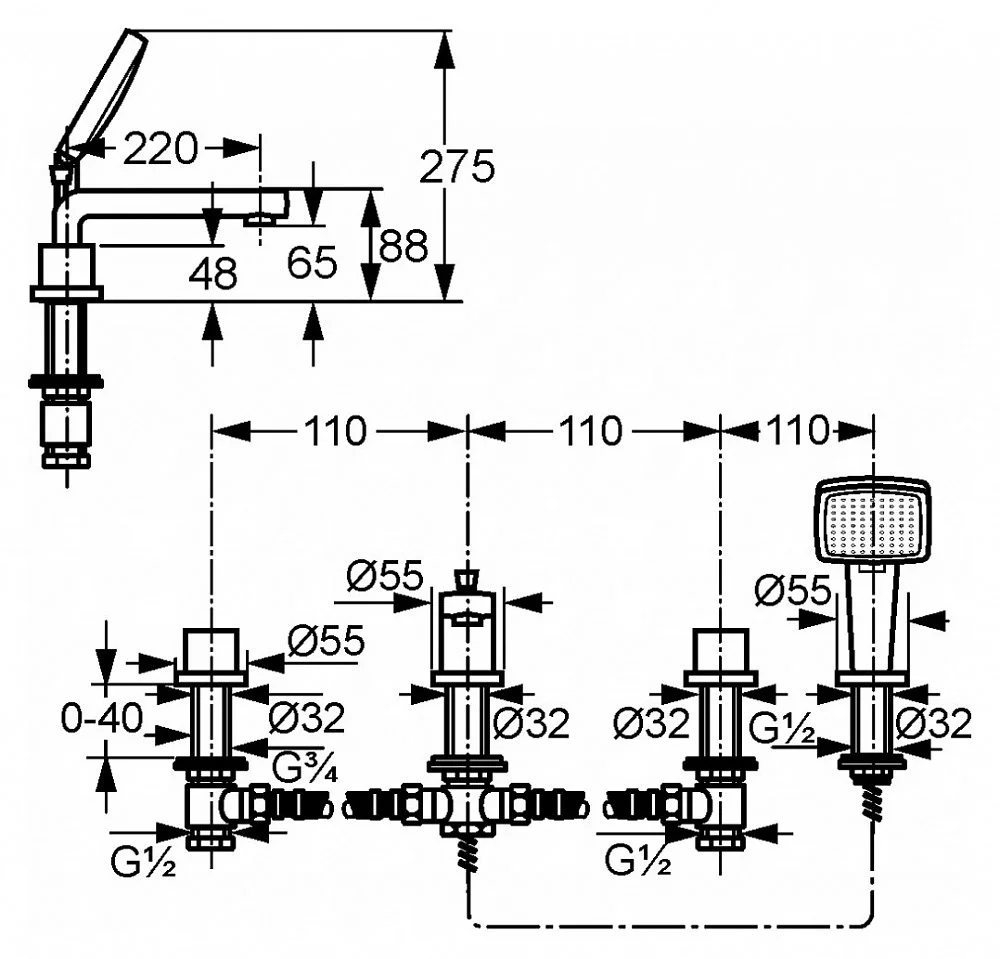 Смеситель Kludi Q-BEO 504240542 для ванны