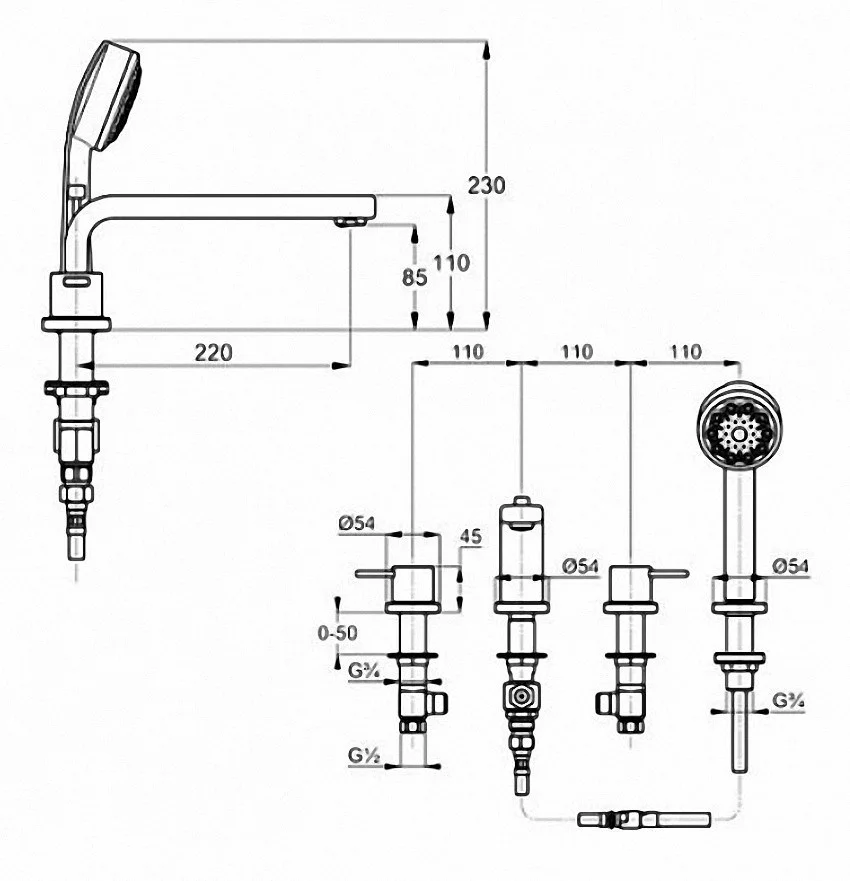 Смеситель на борт ванны Kludi Zenta 384240575 на 4 отверстия, литые рычаги