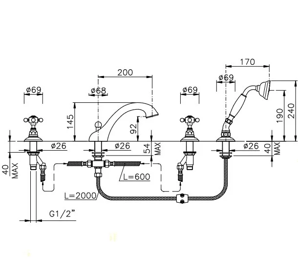 Смеситель на борт ванны Nicolazzi Dames Anglaises 1404BZ78 бронза, ручки P. Mont Blanc