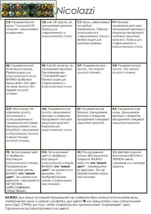 Смесители NICOLAZZI изготавливаются на высоком технологическом уровне и вместе с функциональными, и стилистическими качествами приобрели известность. Компания NICOLAZZI проводит исследования в сфере использования сантехнического оборудования. Разрабатывает свою оригинальную продукцию в соответствии с международными стандартами. Проводится серьезное и тщательное тестирование, контролируя герметизацию, шум, долговечность, функциональность и точность цветовой отделки.