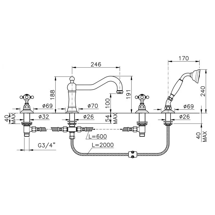 Смеситель на борт ванны Nicolazzi Tradizionale 1449BZ18 бронза/Dames Anglaises