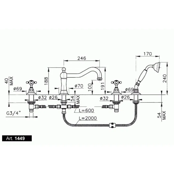 Смеситель на борт ванны Nicolazzi Tradizionale 1449GB78 гальваническое золото/P.M.Blanc