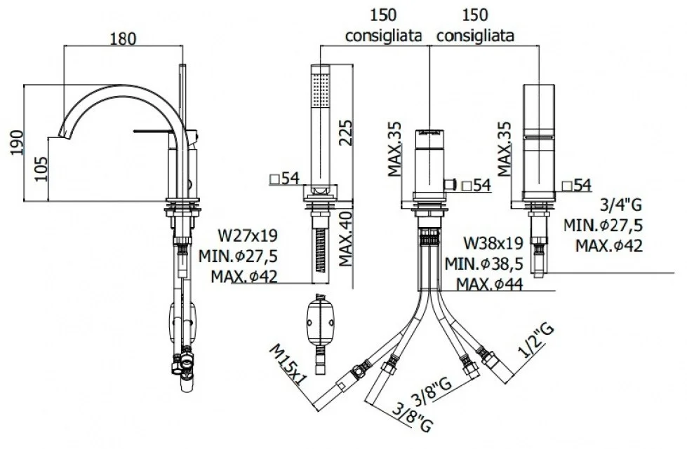 Купить Смесители на борт ванны производства Paffoni (Италия), коллекция RINGO, код товара: 217096 можно выгодно в Сантемо.ру: