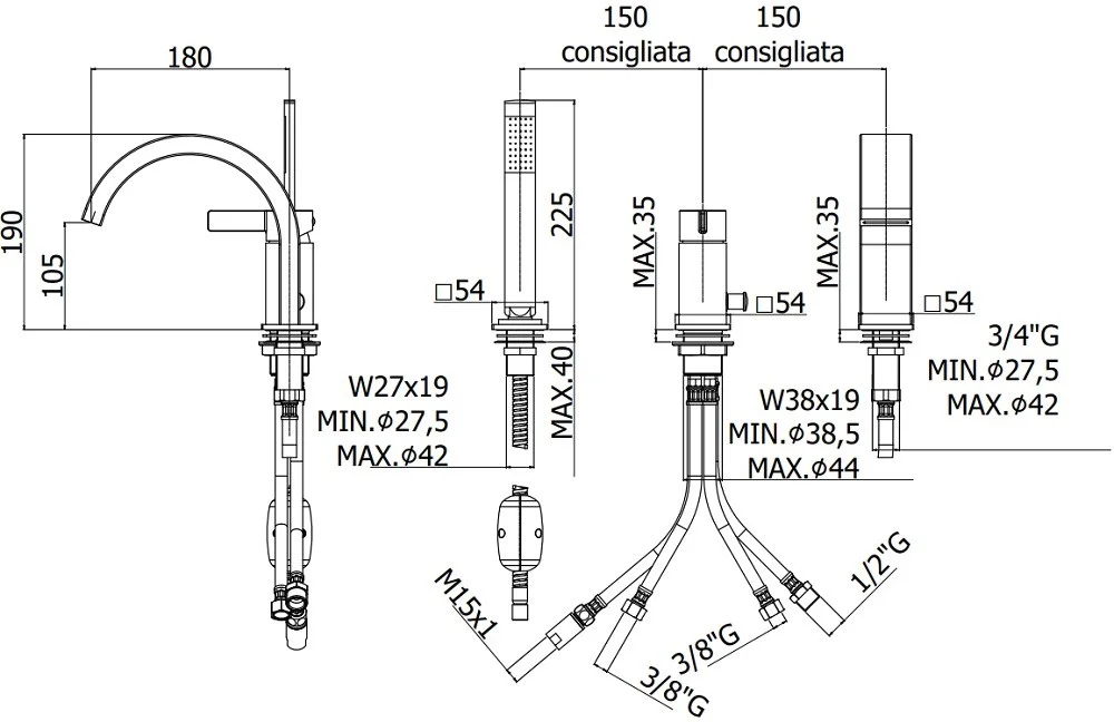 Купить Смесители на борт ванны производства Paffoni (Италия), коллекция Rock, код товара: 217097 можно выгодно в Сантемо.ру: