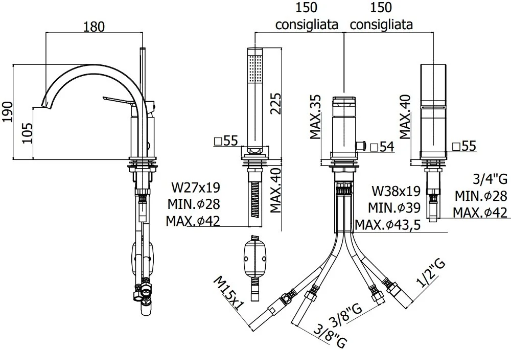 Купить Смесители на борт ванны производства Paffoni (Италия), коллекция Tilt, код товара: 217099 можно выгодно в Сантемо.ру: