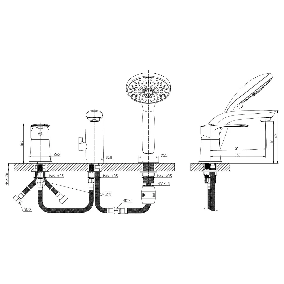 - Аксессуары в комплекте (шланг 2 м, настенное крепление, 5-функциональная лейка с функцией легкой очистки, свинцовый отвес)