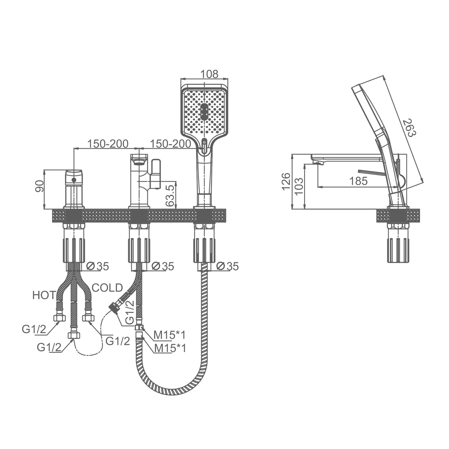 Длина душевого шланга, мм