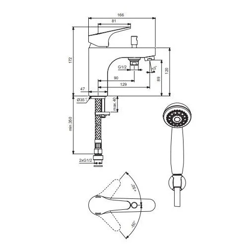 - Переключение ванна/душ: ручное (позволяет использовать функцию “душ” даже при очень низком давлении воды)