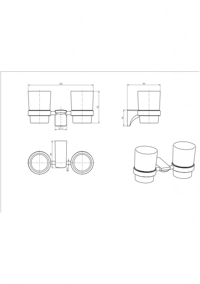 Стакан CeramaLux 70003 двойной стекло, черный матовый