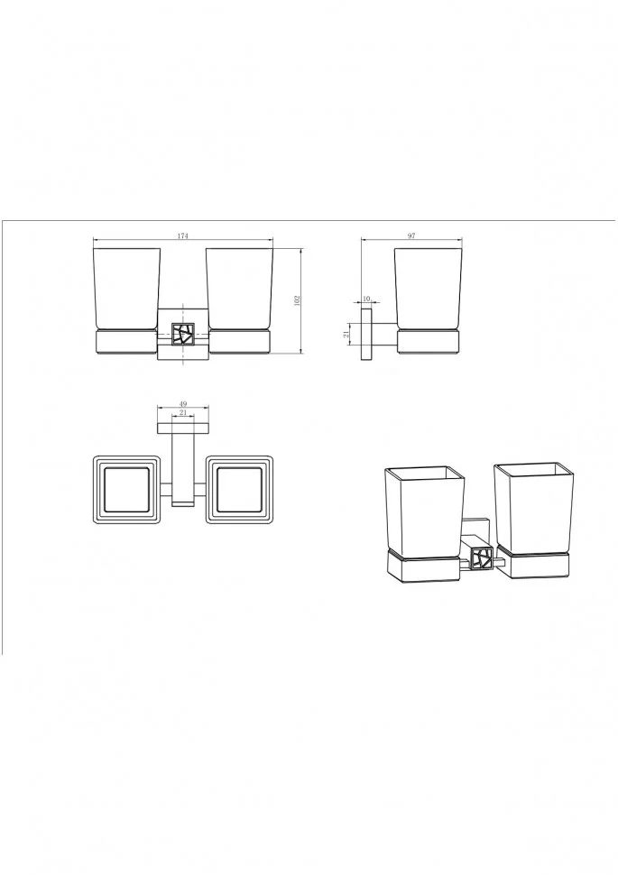 Стакан CeramaLux 88603-1 двойной подвесной, хром