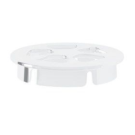 Дополнительный держатель зубных щеток в виде пластиковой насадки на стакан позволяет хранить в нем до пяти щеток. Насадка уменьшает возможность соприкосновения щеток друг с другом, обеспечивая тем самым необходимую гигиену. Этот компонент наиболее рационально использовать в двойном стакане, один из которых применяется для хранения зубных щеток, а второй – для зубной пасты и других гигиенических предметов.