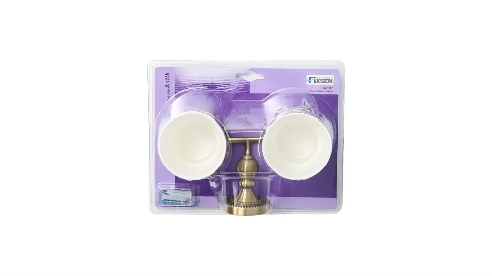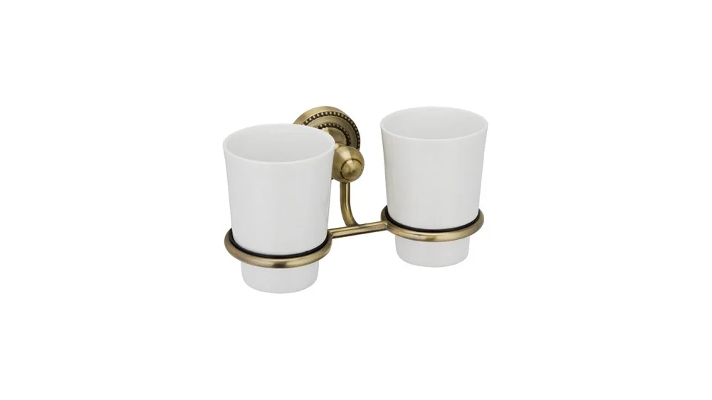 Настенный стаканчик для зубных щёток. Материалы - латунь, белая керамика.