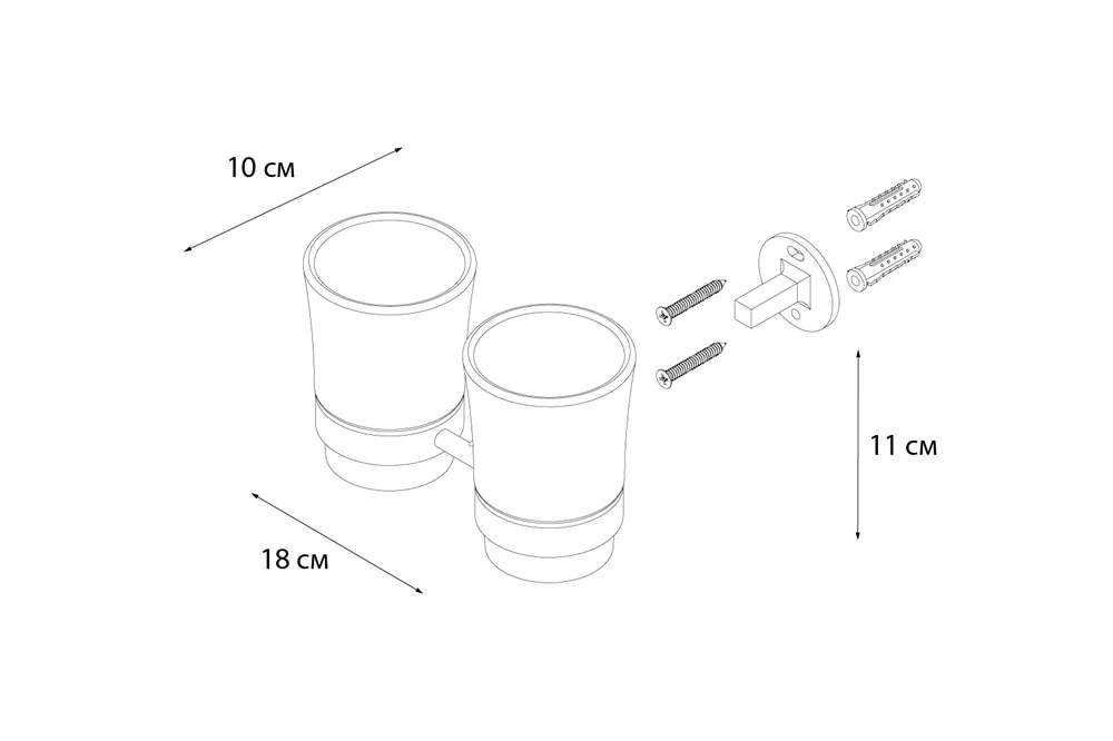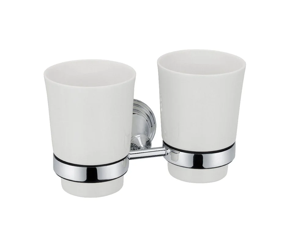 Настенные керамические стаканчики для зубных щёток с двойным держателем из хромированной латуни.