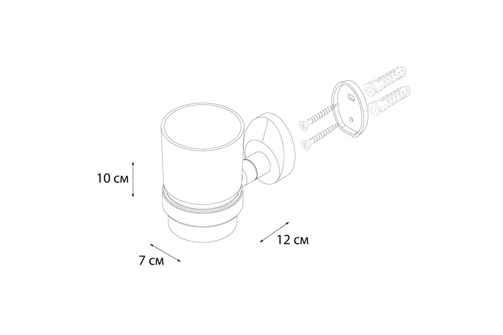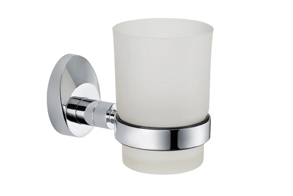Настенный стаканчик для зубных щёток. Материалы - хромированная латунь, матовое стекло.