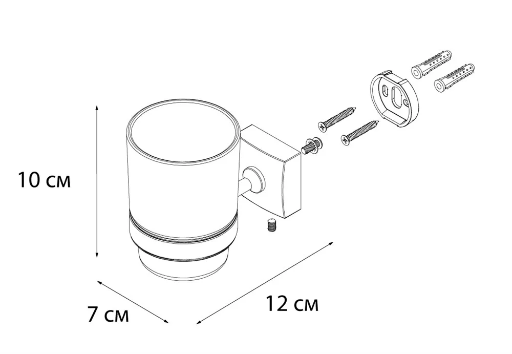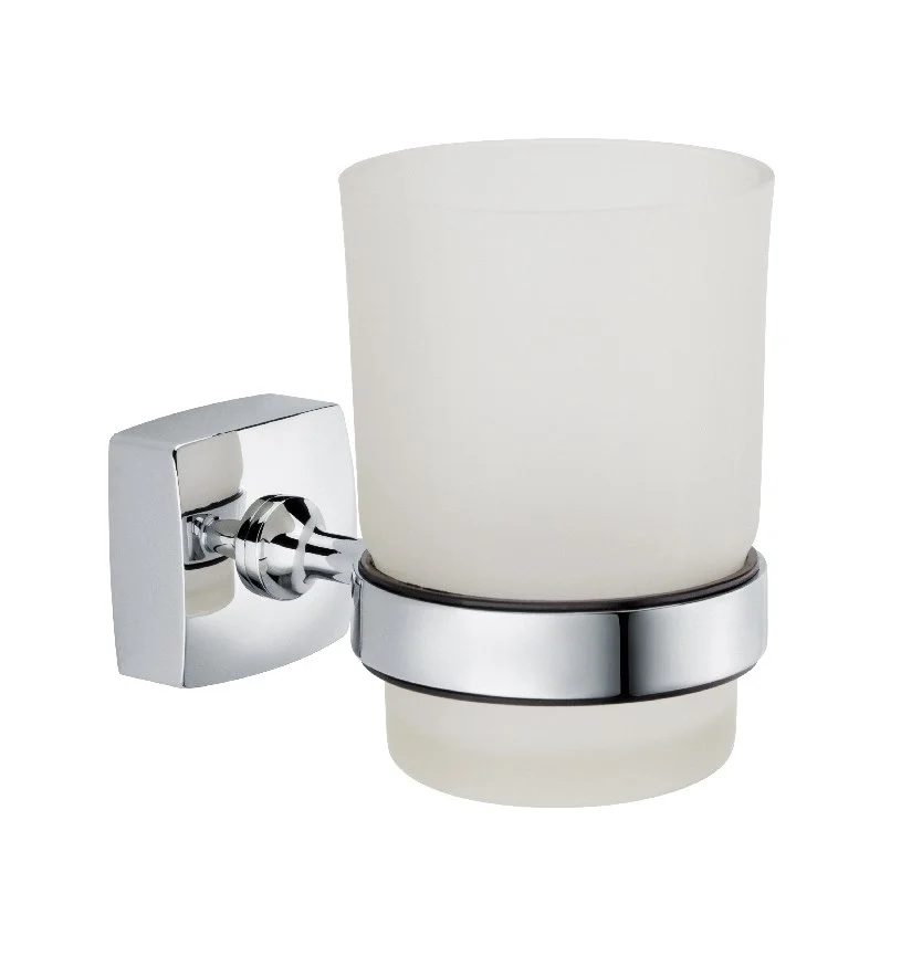 Настенный стаканчик для зубных щёток. Материалы - матовое стекло, хромированная латунь.