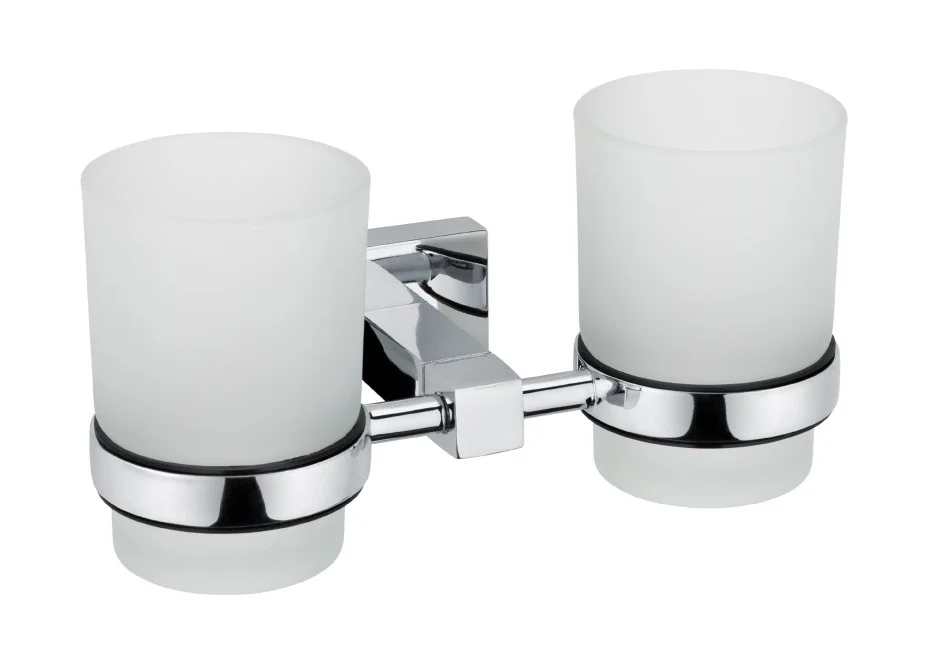 Настенный стеклянный стакан для зубных щеток, двойной, с квадратным основанием в лаконичном дизайне, который подойдет к любому современному интерьеру ванной комнаты.