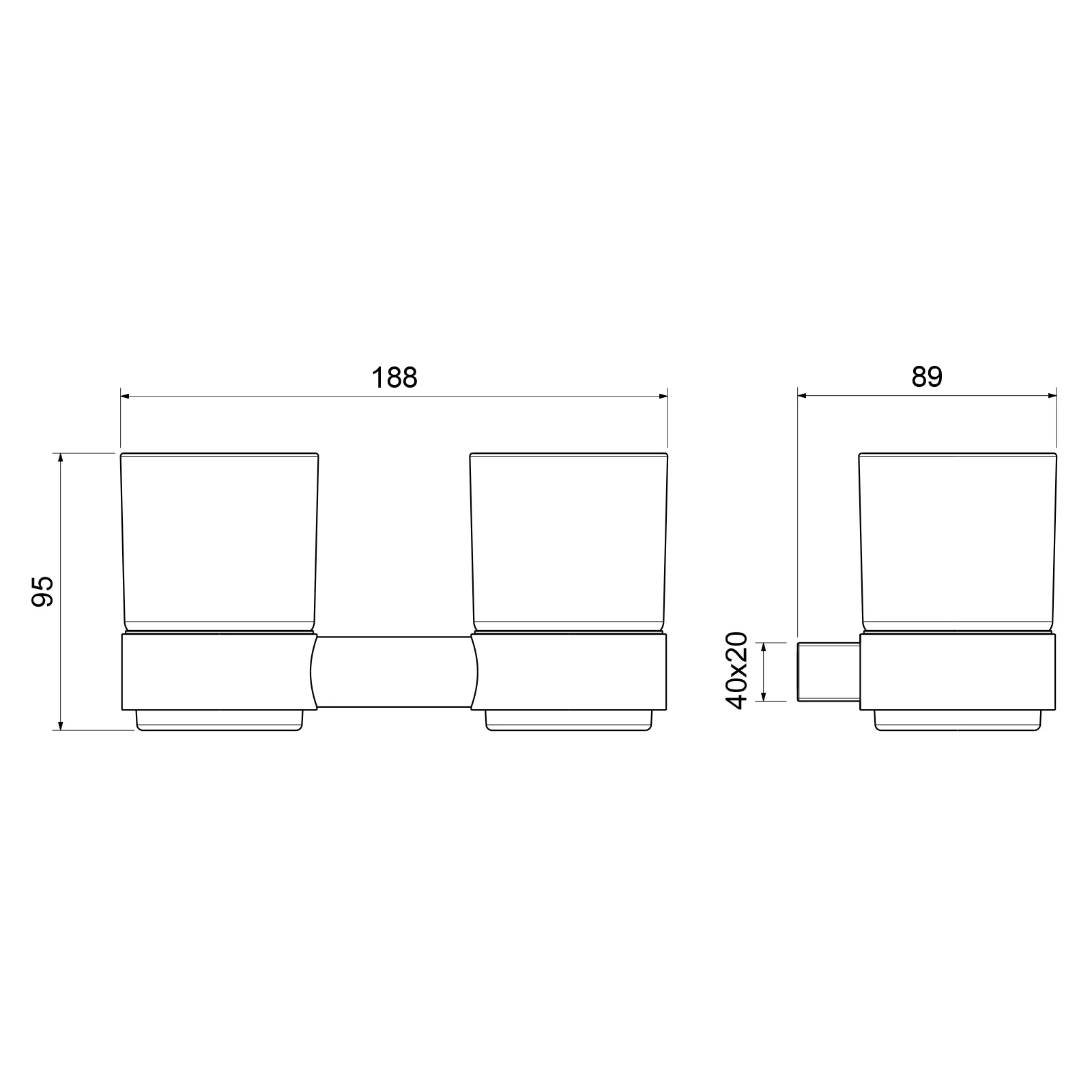Стакан стеклянный - 2 шт., Держатель для стакана - 1 шт., Набор креплений - 1 шт.
