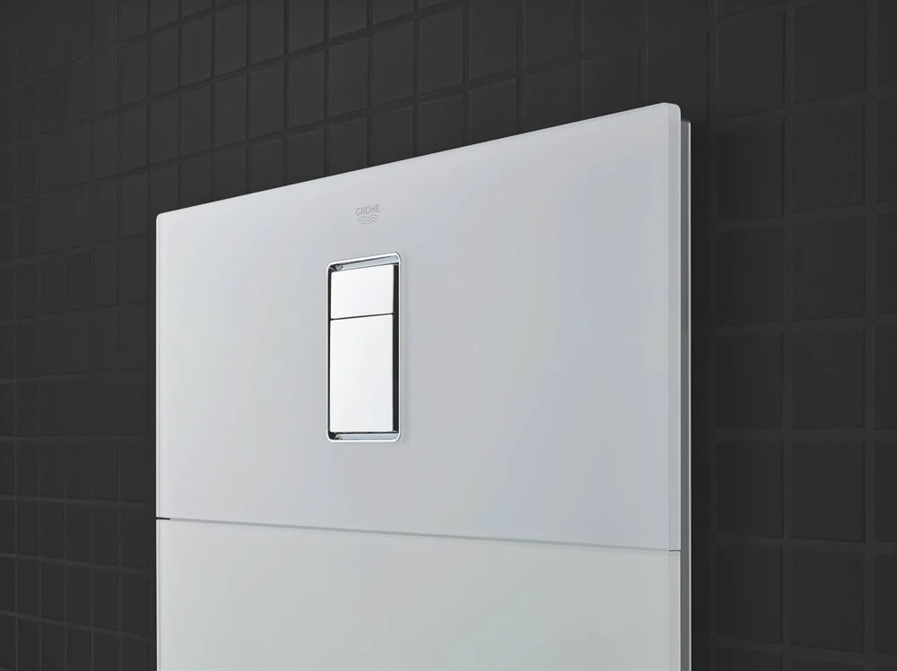 панель смыва Skate Cosmopolitan (хром) располагается на одном уровне со стеклянным модулем