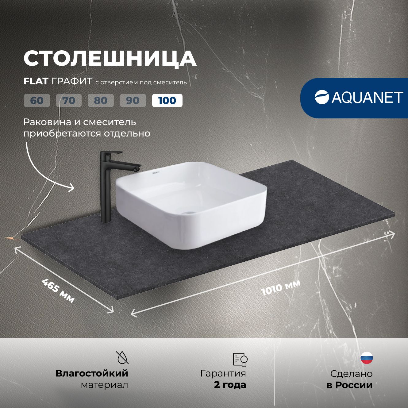 Столешница Aquanet Flat 100 00345788 графит, с отверстием слева