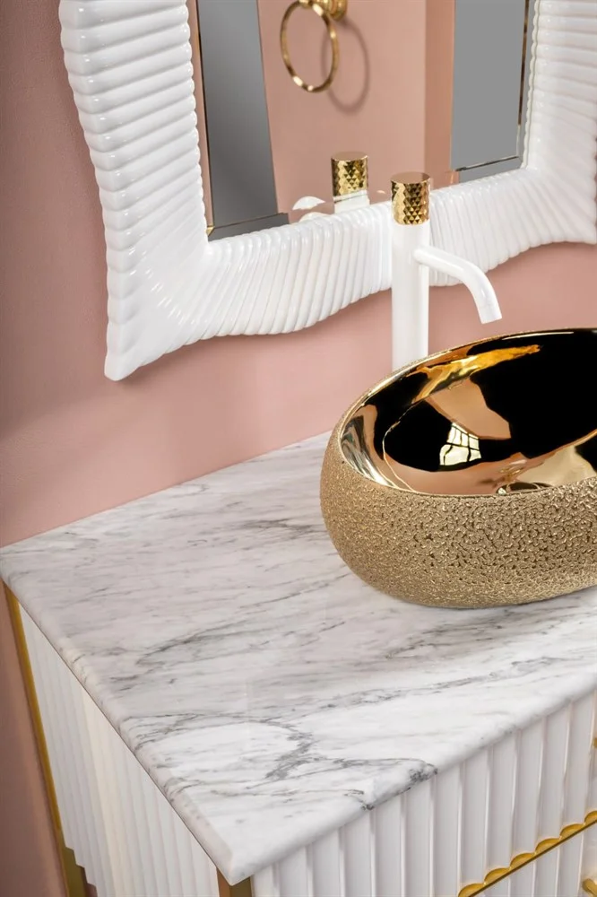 Столешница Armadi Art мрамор 81см Bianca Carrera под LV-6 чашу 857-081-BC