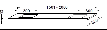 Столешница 1600 мм с 2 отверстиями для раковин Reve