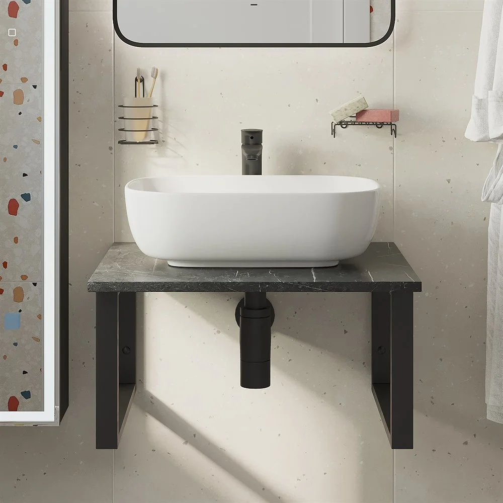 Столешница с раковиной DIWO Элиста 60 чёрный мрамор, с раковиной Moduo 50 Square 554738