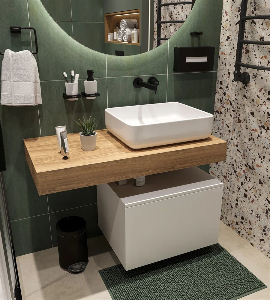 Столешница STWORKI Ольборг 100 дуб французский, без отверстий, с тумбой 60, с раковиной STWORKI Soul 489129