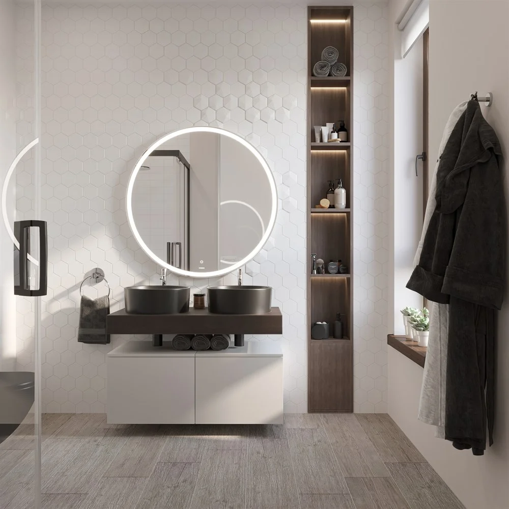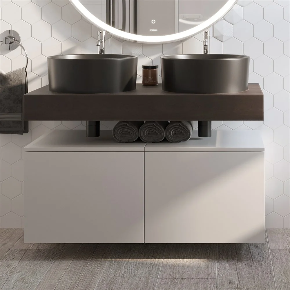 Столешница STWORKI Ольборг 100 дуб карпентер, без отверстий, 2 тумбы 50 + 2 раковины 485852
