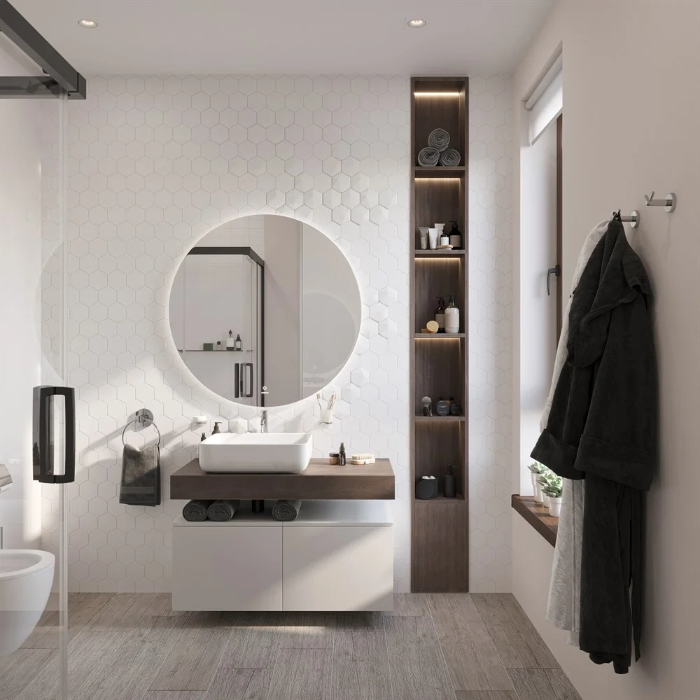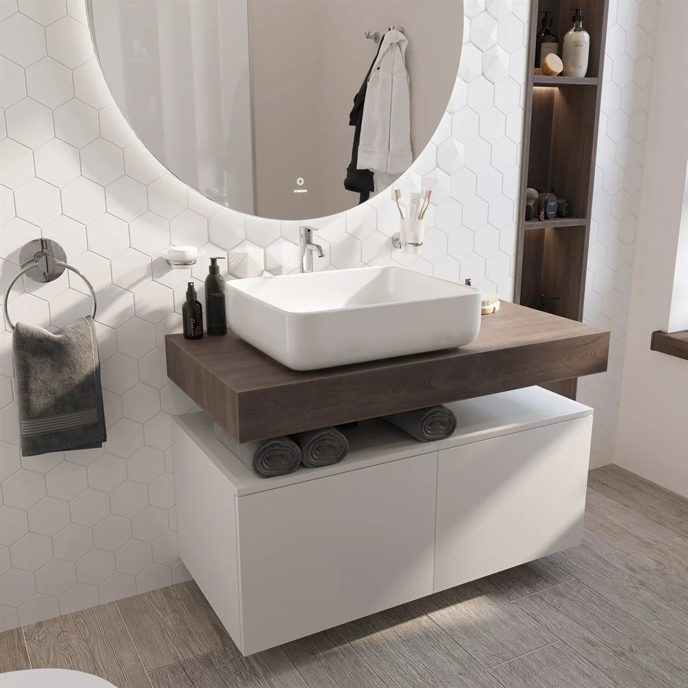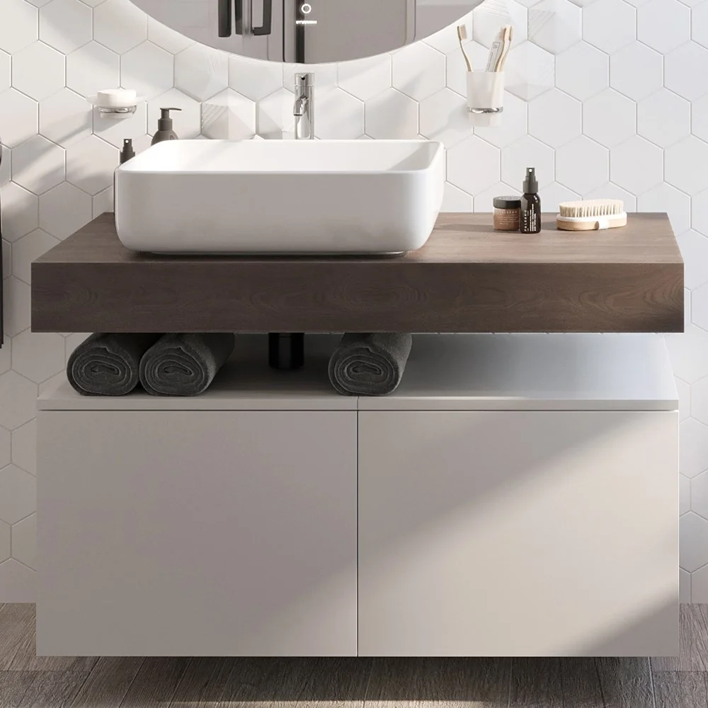 Столешница STWORKI Ольборг 100 дуб карпентер, без отверстий, 2 тумбы 50, с раковиной STWORKI Soul 1